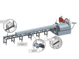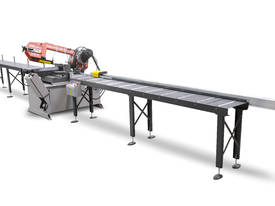 The handling program offers simple, precise length measuring systems in almost unlimited lengths for custom adjustment to your requirements. The versions range from a simple, completely manual measuring stop, to a digital measuring stop with hand wheel setting, all the way to a high-precision NC measuring stop with a sensitive limit switch for cutting heavy materials to exact length in coordination with propelled roll conveyors.