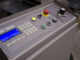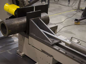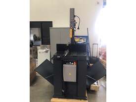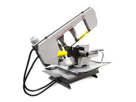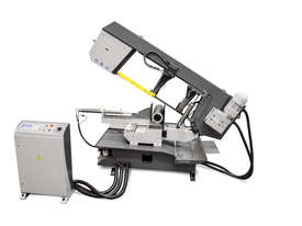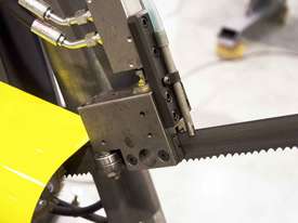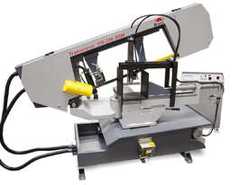 The Bomar TRANSVERSE 510.330 DGH is a Double Mitre Semi-Automatic Bandsaw with a top price-performance ratio, a broad cutting range and multiple options enabling its extension to a full hydraulic semi-automatic. Precise hard metal saw band guides, a 32mm saw band and a powered swarf brush are the prerequisites for excellent cutting performance. It comes with cooling in the machine base and with angle cuts to both sides in the range of 60° - 0° - 60°. Arm turning is performed manually. Adjustment of angle cuts is performed easily from the operator’s position. The machine is located on a turning console equipped with a digital angle scale. The peripheral speed of the saw band is adjustable in the range of 20 – 90 m.min-1. Material feeding into the cut is performed manually. The machine can be easily controlled from a moveable control panel as shown in the machine photo. The saw moves into the cut due to the frame weight with a hydraulic regulation of the feeding speed and it can be adjusted comfortably on the control panel. The return of the saw is also hydraulic driven.